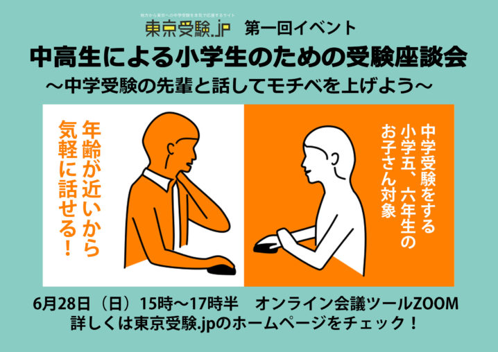 東京受験.jp第一回「中高生による小学生のための受験座談会」~中学受験の先輩と話してモチベを上げよう イベントレポート記事はこちら↓ 参加方法:このGoogleフォーム(記事下部のものと同じです)に答える。 ▼こんな方に…